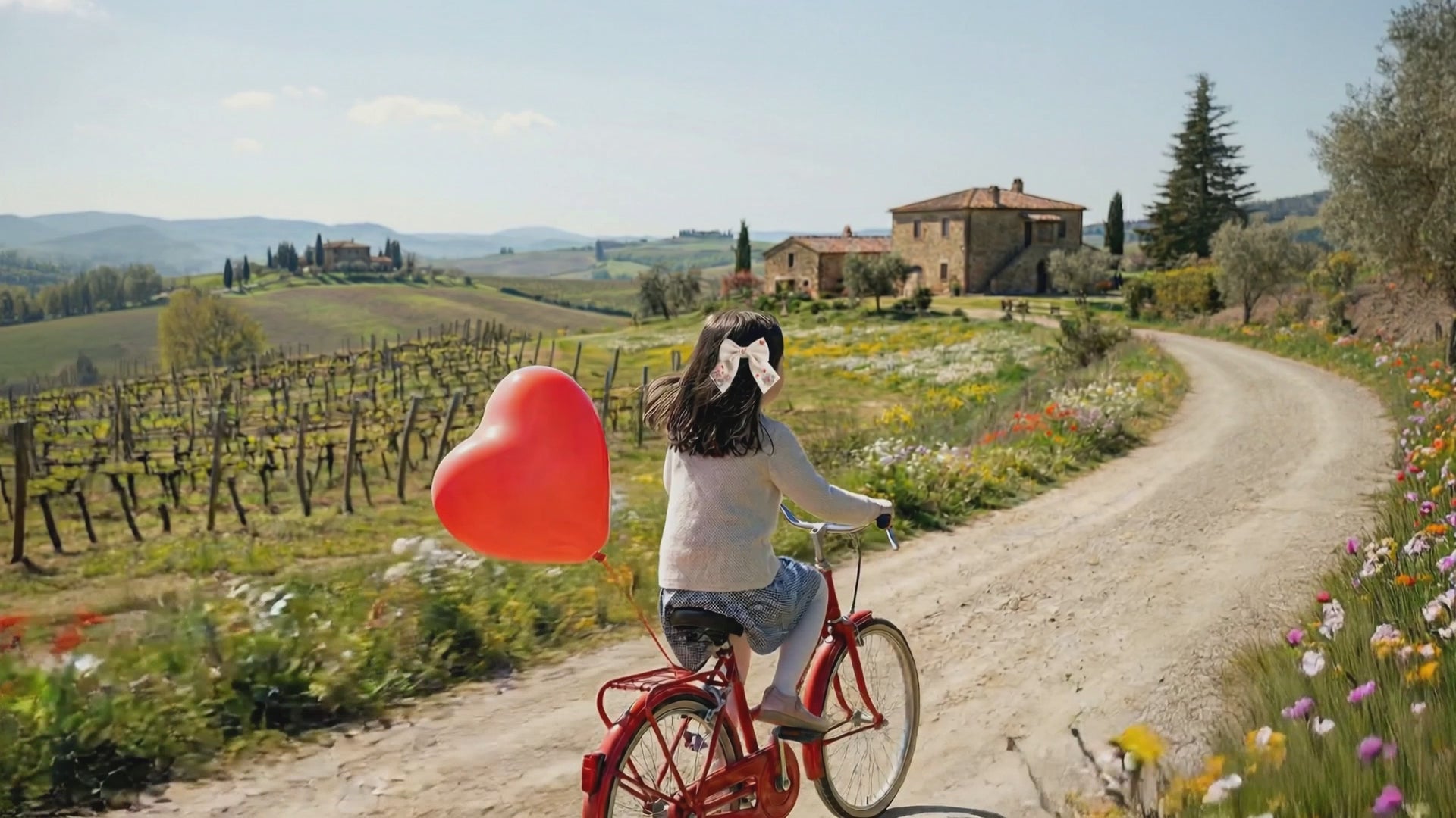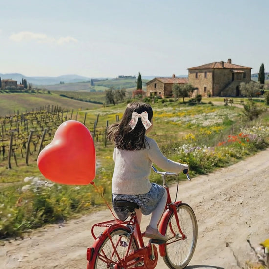 Linen bow with “Bicycle and Flowers” embroidery