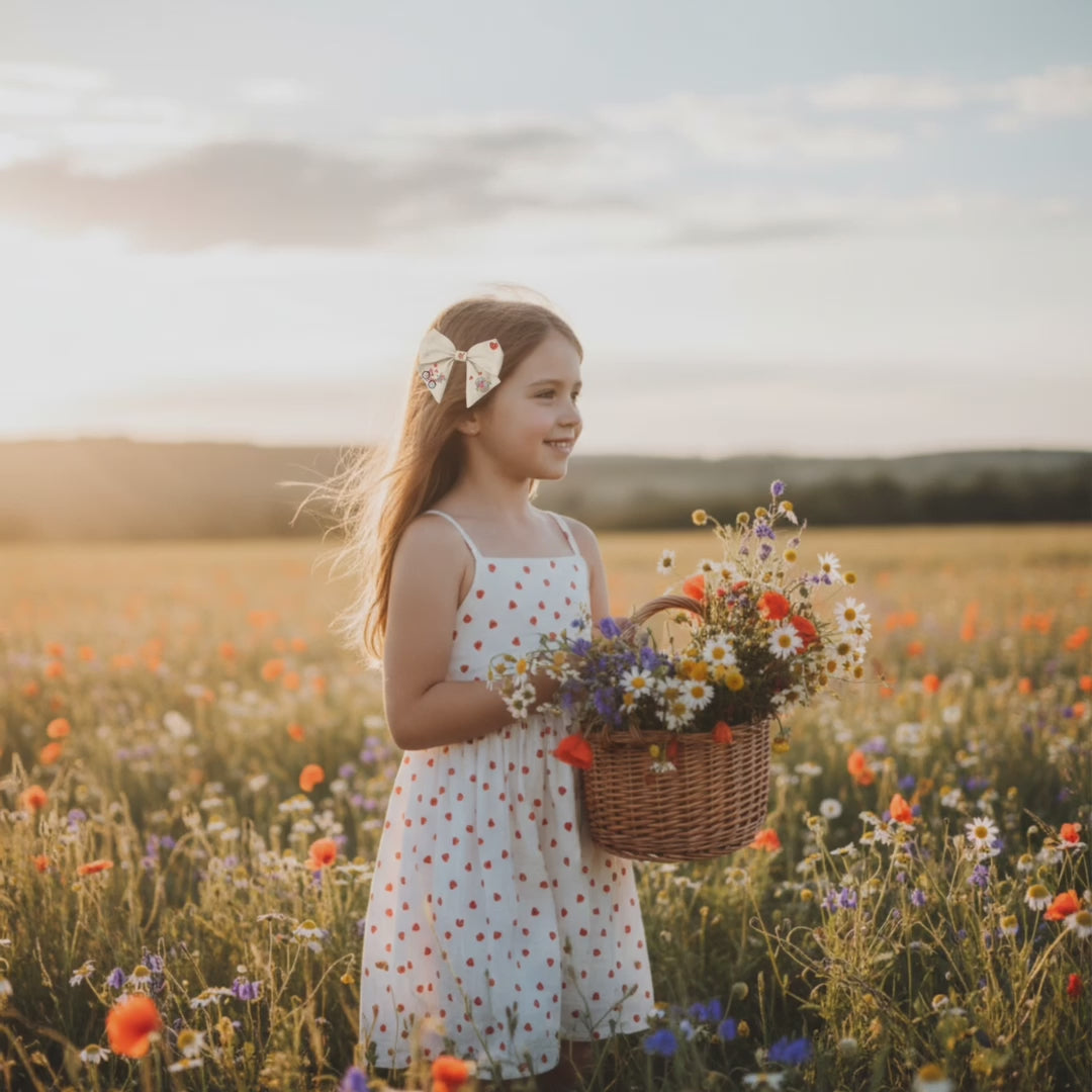 Linen bow with “Bicycle and Flowers” embroidery