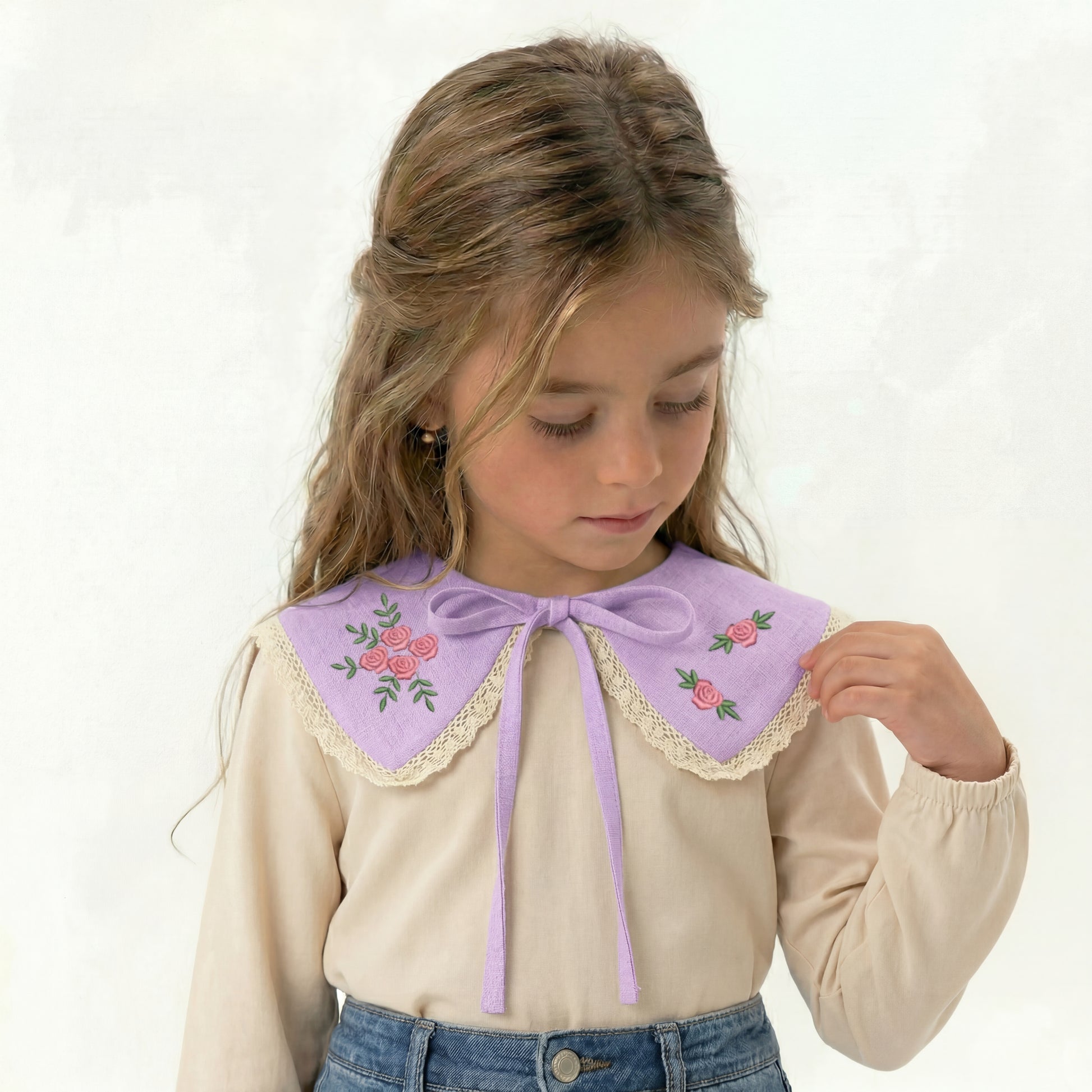 Colletto in lino lilla con ricamo di rose – fatto a mano